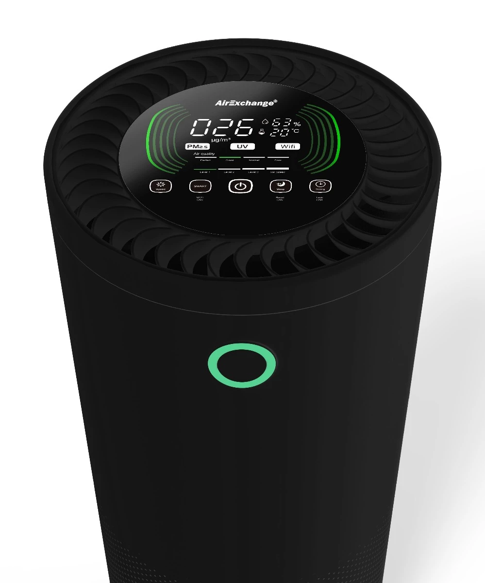 AirExchange 20200600-T | NOIR Purificateur d’air professionnel 600-T Noir avec filtre HEPA H14, charbon, ioniseur et lampe UV-C | Convient pour une surface allant jusqu’à 100m².