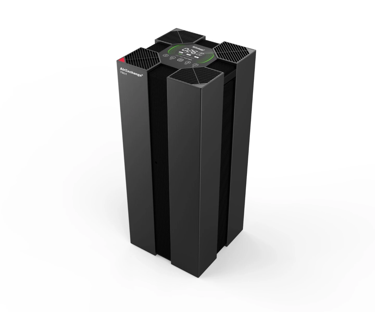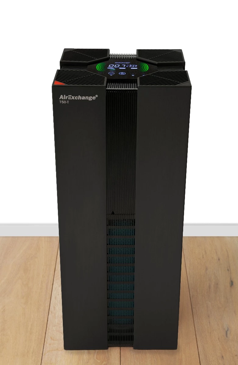 L’AirExchange® 750-T est un système de purification d’air puissant au design intemporel. Il est fabriqué dans un boîtier en aluminium brossé et anodisé noir.