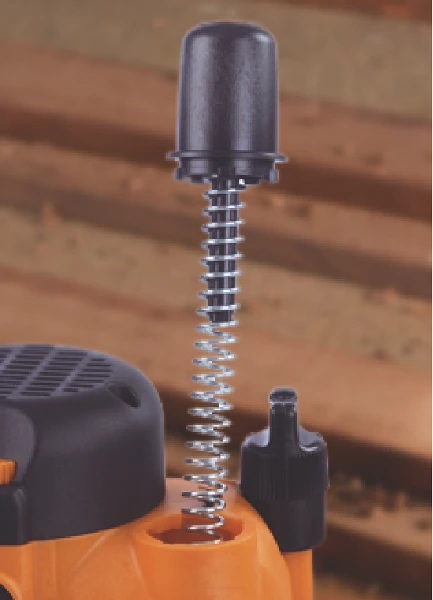 - Ressort de coupe amovible pour faciliter le réglage de la hauteur lorsque le CMT7E est utilisé sous une table de défonceuse (de CMT)