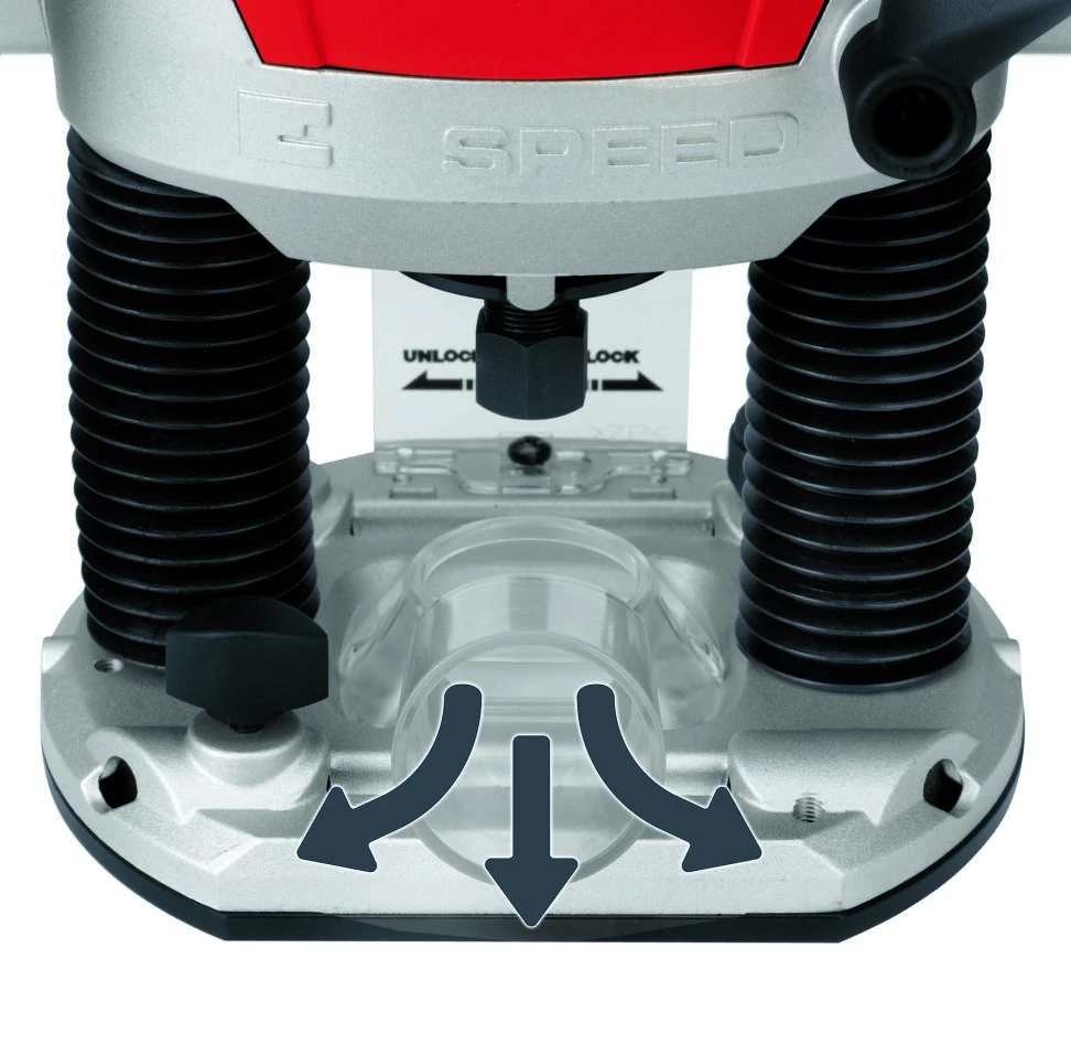 - Profondeur de fraisage réglable en continu avec réglage fin