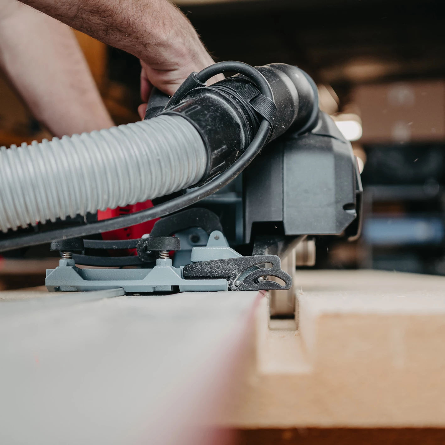 - Grâce à la fonction 2 en 1, vous réglez la profondeur de fraisage rapidement et facilement.