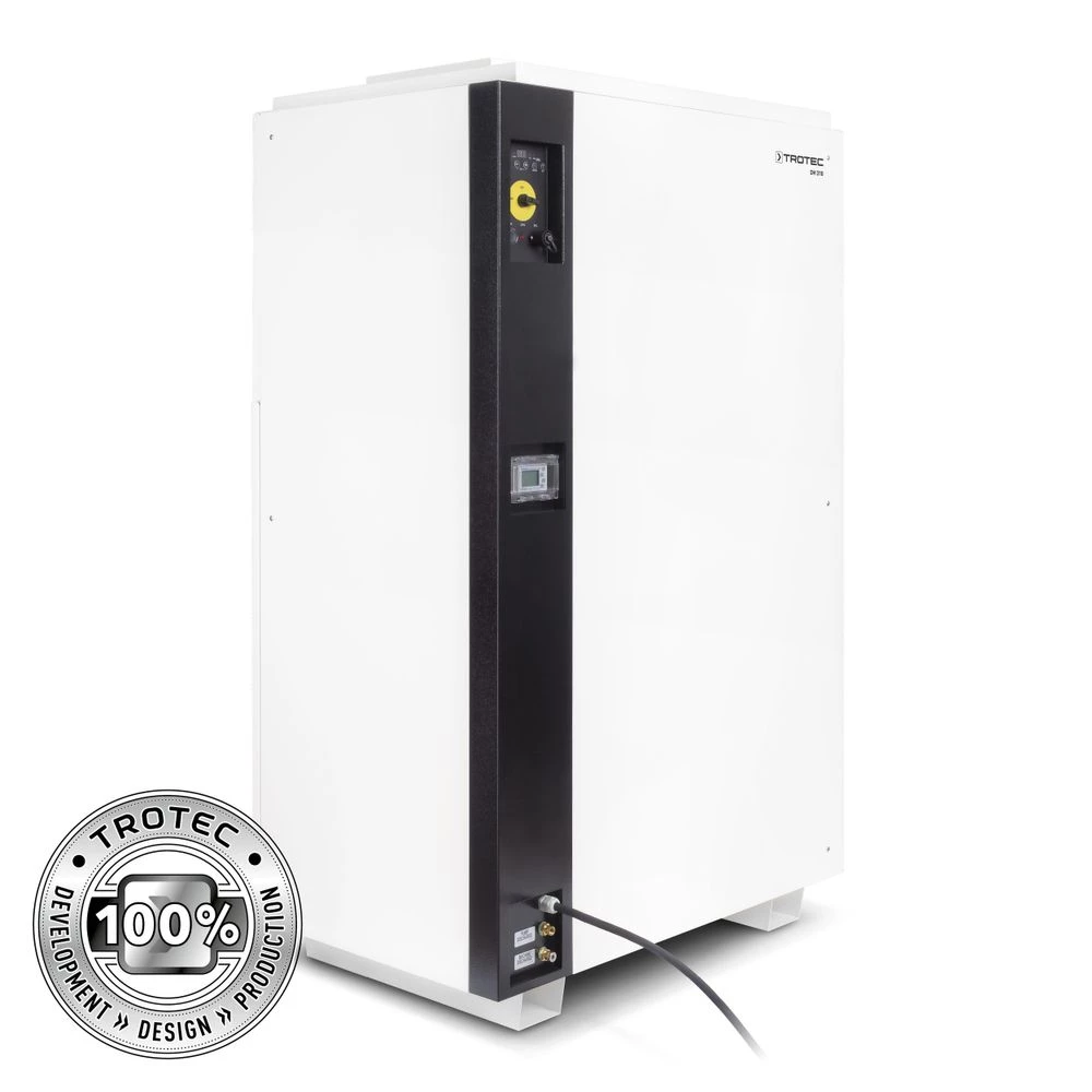 - Le sécheur à condensation industriel DH 310 BX, qui peut également être fourni avec un boîtier en acier inoxydable, se caractérise par sa grande capacité de déshumidification, son fonctionnement continu fiable et ses options d’équipement pratiques.