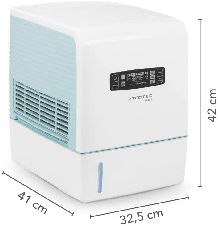 - Principe naturel d’évaporation à froid sans tapis filtrant, pas de dépôts calcaires ni de taches humides comme avec les humidificateurs à ultrasons et à vapeur.