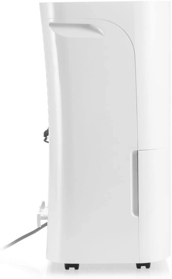 - Les bords élégamment arrondis s’harmonisent avec le blanc élégant, et de subtiles poignées encastrées ouvrent la voie aux détails pratiques de ce déshumidificateur phare.
