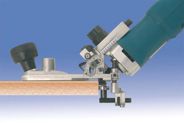 - Fraisage avec le cutter droit : Le moteur inclinable vous permet de fraiser des bords droits avec le cutter droit (inclus dans l’emballage standard) ainsi que des bords saillants.